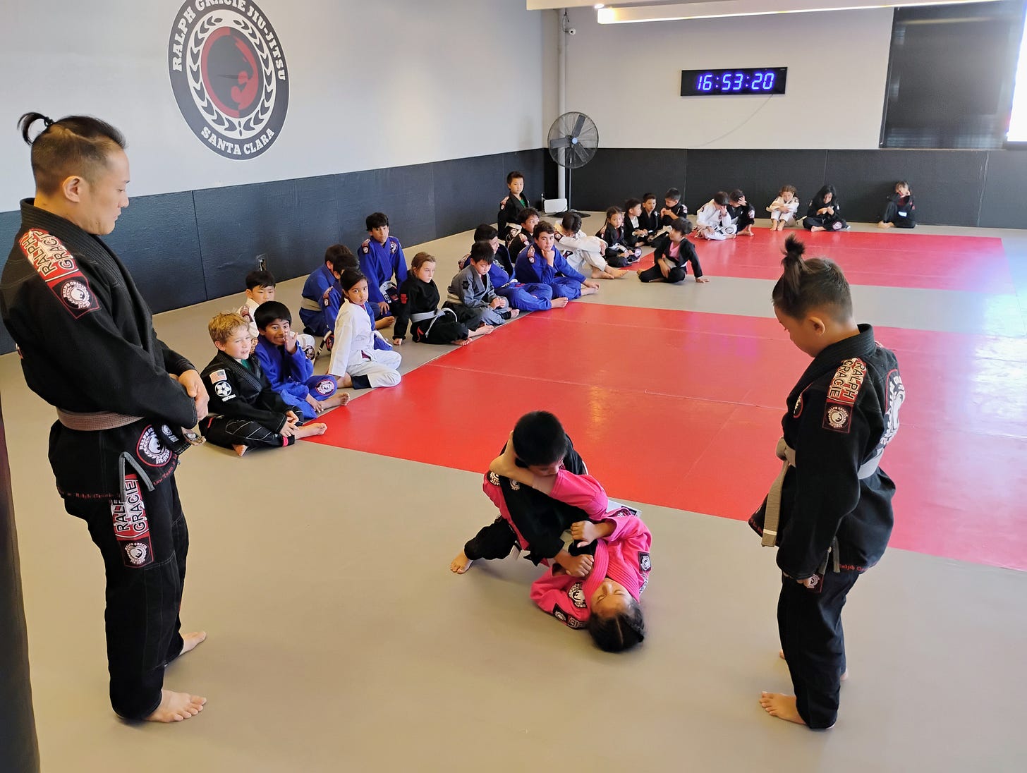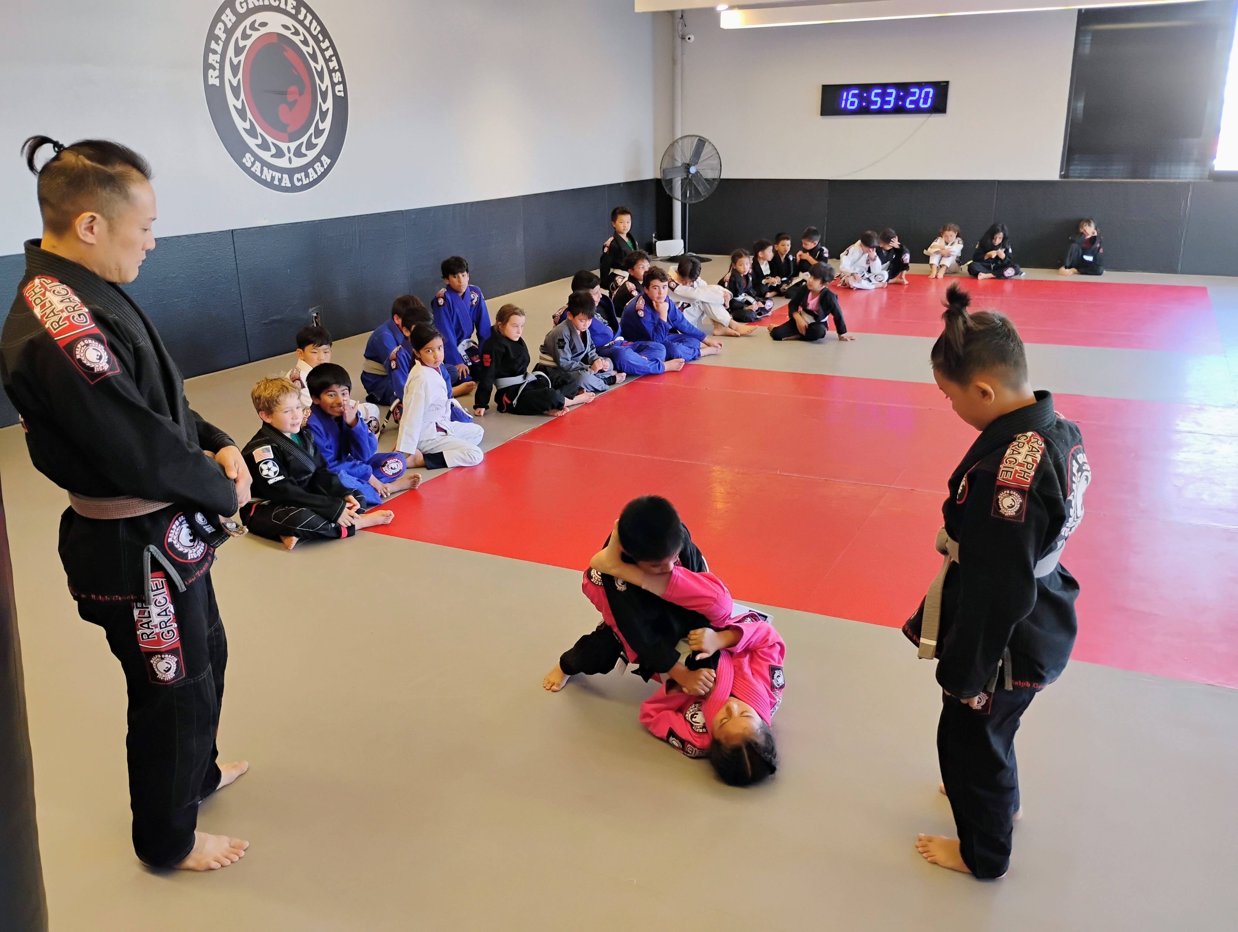 Ralph Gracie Santa Clara competition kids and teens class preparing for upcoming tournaments. The matches can get intense.